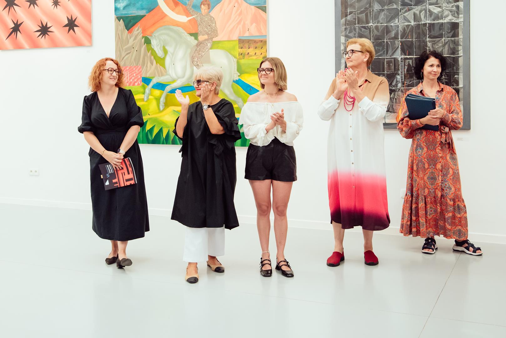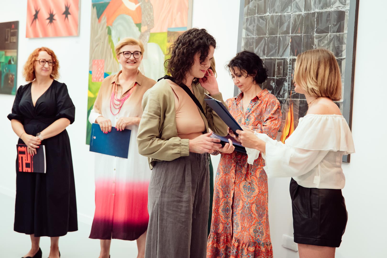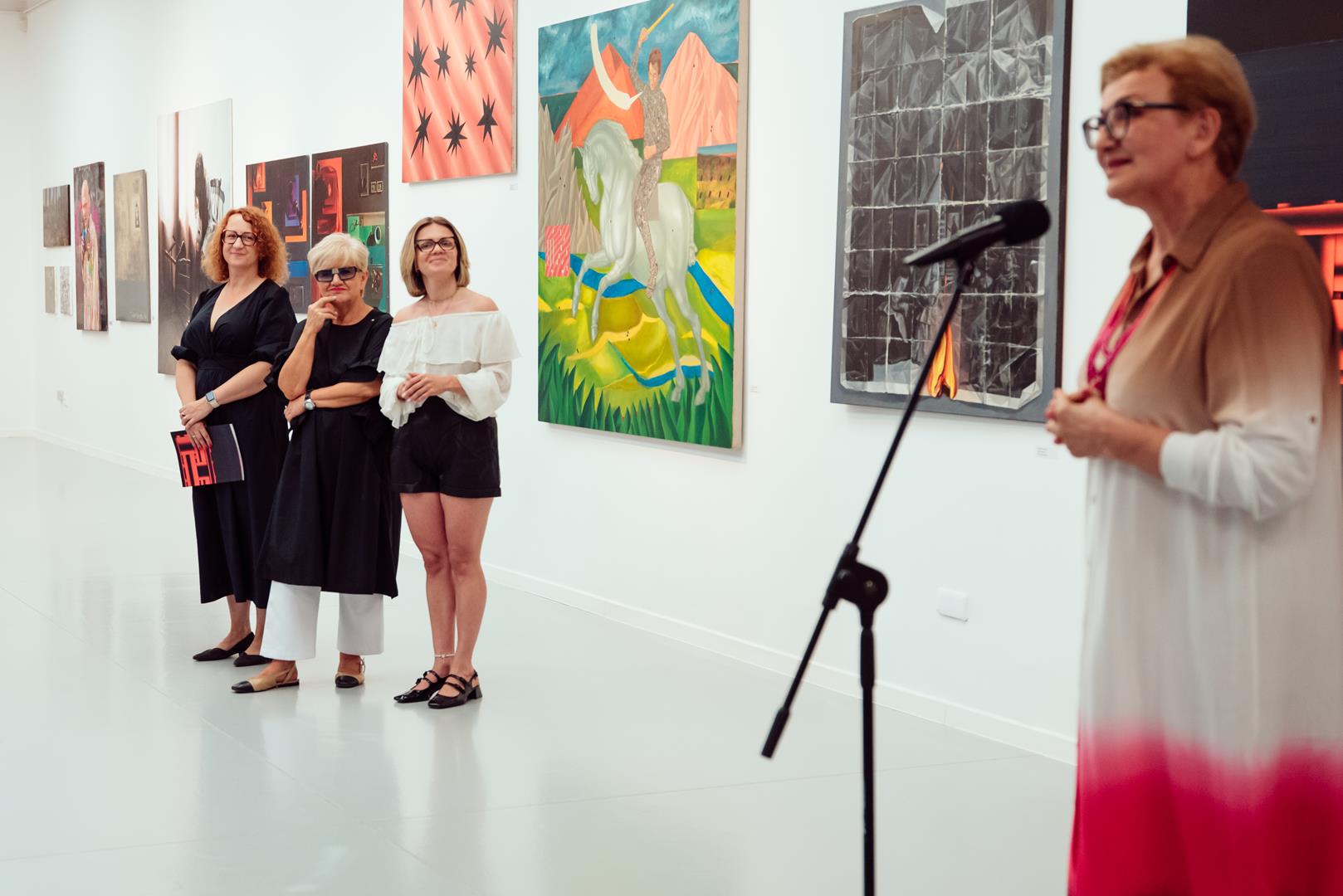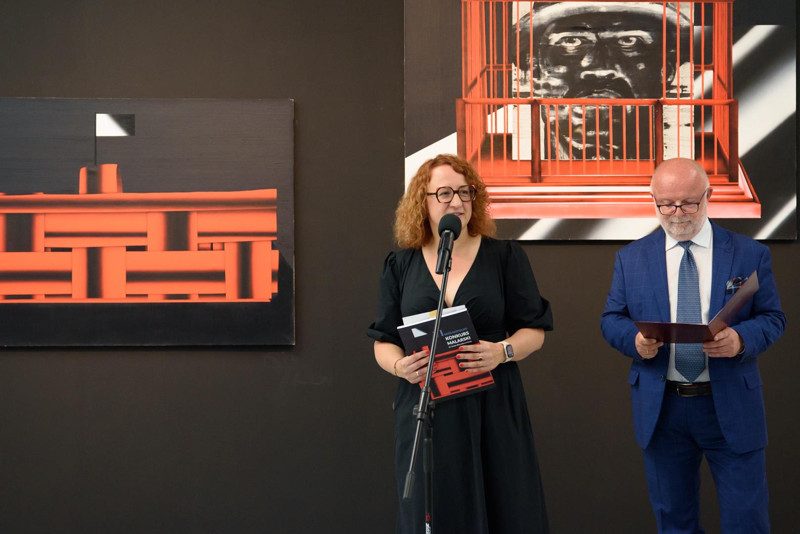 Jeśli już próbować dokonywać pewnych uogólnień dotyczących specyfiki bydgoskiej wystawy, to stwierdzić by można (dość ogólnikowo) prymat malarstwa przedstawiającego nad nieprzedstawiającym. Mniej licznie, niż można byłoby się spodziewać, reprezentowana jest abstrakcja. Popularna jeszcze dekadę temu, od kilku lat wyraźnie ustępuję figuracji, co dostrzec można również w selekcji wybranych do ekspozycji prac. Nie zmienia to jednak faktu, że sztuka bezprzedmiotowa wciąż pozostaje obszarem poszukiwań osób artystycznych, które z powodzeniem działają w tym obszarze. Dowodem na to jest chociażby przyznanie w konkursie drugiego miejsca Zuzannie Malinowskiej za serię trzech prac bez tytułu. W tych obrazach najważniejsze są gest, widoczny dukt pędzla oraz wysmakowane połączenia kolorystyczne. Mocne i wyraziste barwy sąsiadują tu z trudnymi do jednoznacznego nazwania i zaklasyfikowania, bo powstałymi poprzez wymieszanie kilku odcieni. Swoje kompozycje malarka tworzy warstwowo, kładąc na siebie plamy kryjące i transparentne, o wyraźnych granicach i rozmalowane. Pozwala farbie swobodnie spływać, tworzyć zacieki, posługuje się wyrazistymi liniami kojarzącymi się ze znakami wziętymi z dalekowschodniej kaligrafii, wreszcie subtelnie chlapie farbą, wydrapuje ją, rozbryzguje. Prowadzi narzędzie torem kolistym, to znów ostro zmienia kierunek ruchu pędzla. Mimo bogactwa formalnego prace Malinowskiej są lekkie, ciekawe dla oka i mogą dokonać resetu percepcji przebodźcowanej przez media społecznościowe.