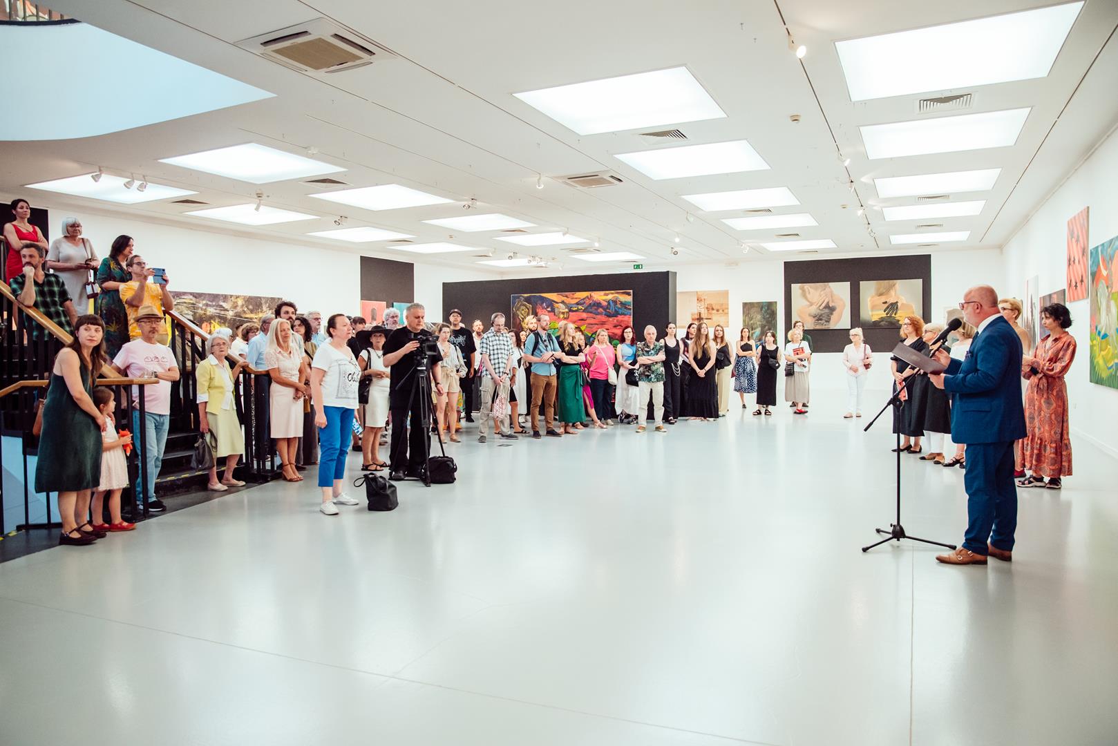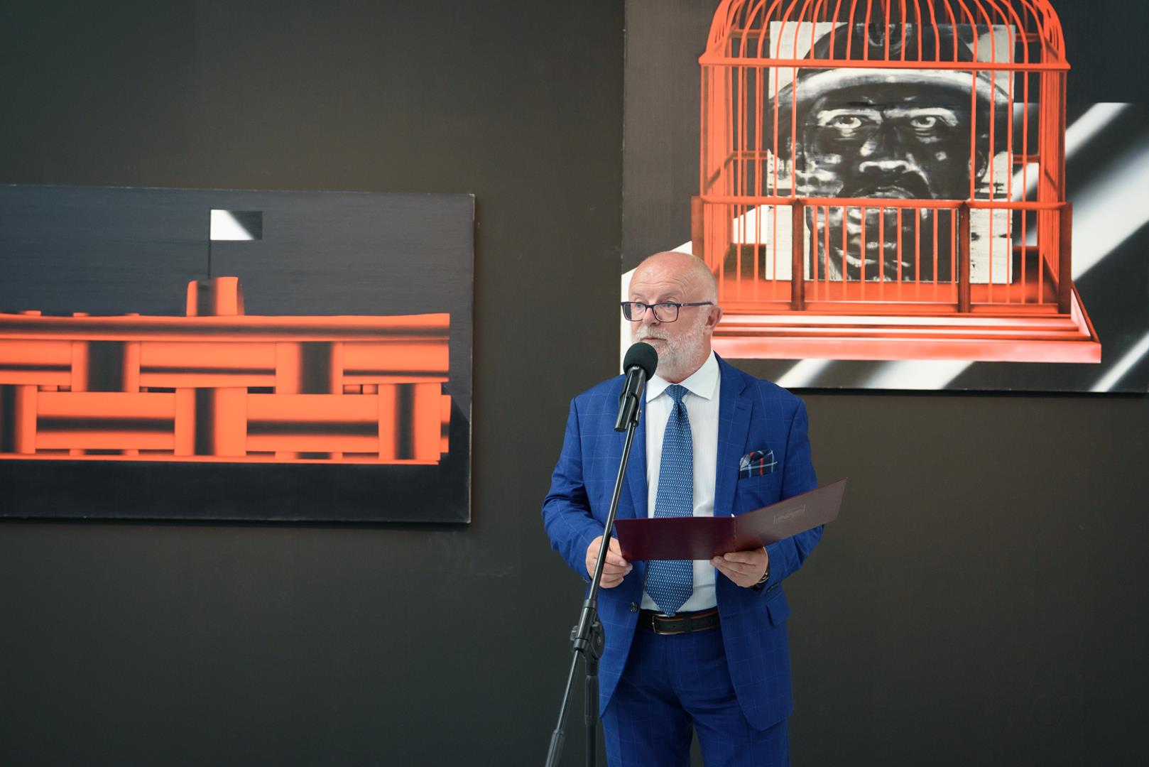 Do sytuacji za naszą wschodnią granicą odnoszą się w swoich pracach także Henryk Laskowski (Wiatr ze wschodu) i Michał Cygan (Stumilowy las). Temu ostatniemu nieobca jest także m.in. tematyka strajków jako wyrazu społecznego niezadowolenia. Z kolei realizacje Jana Skolimowskiego czy Michała Wojtysiaka przyrównać moglibyśmy do ilustracji współczesnej wieży Babel, gdzie ludzkie mrowie funkcjonuje pogrążone w chaosie rzeczywistości. W prezentowanych na wystawie pracach wyczytać można także refleksje postpandemiczne zmieszane z namysłem nad kolejnymi zagrożeniami, jakie czyhają na nas w tych niepewnych czasach (Philipp Wendland), ironiczne odniesienie do gry pozorów, jaka znamionuje świat polityki (Łukasz Jankowicz) czy wyczulenie na społeczne nastroje i tematy antagonizujące opinię publiczną (Zbigniew Nowicki).